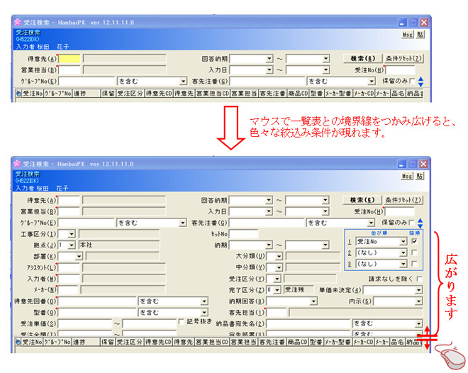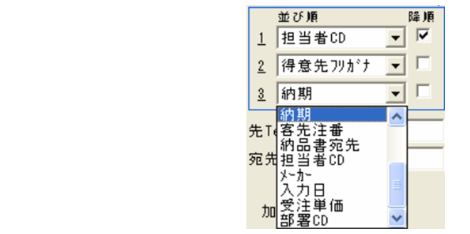 通常、良く使う検索条件(担当者、得意先、納期、注文番号など)が用意されています。