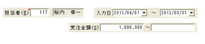 「去年入力の、○○担当者の100万円以上の受注を調べたい」