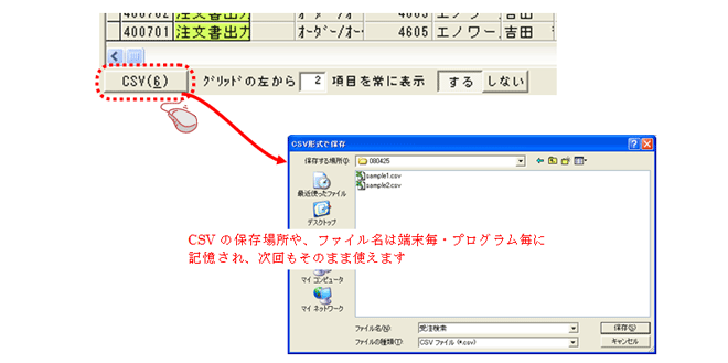 ■検索した内容は、CSVデータとして保存でき、Excelなどで利用できます
